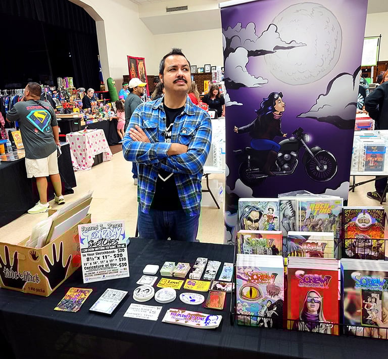 Comic Cons, Book Fests...When I table at a show I bring what you see in the online store plus my bin of Original Art and other goodies.